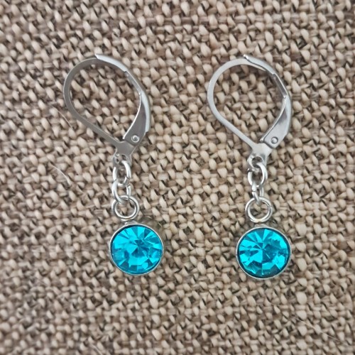 • 8mm Stainless Steel Round Dangle Earrings - Aquamarine