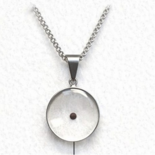 Silver Stainless Steel Pendant - Round Resin with Mustard Seed