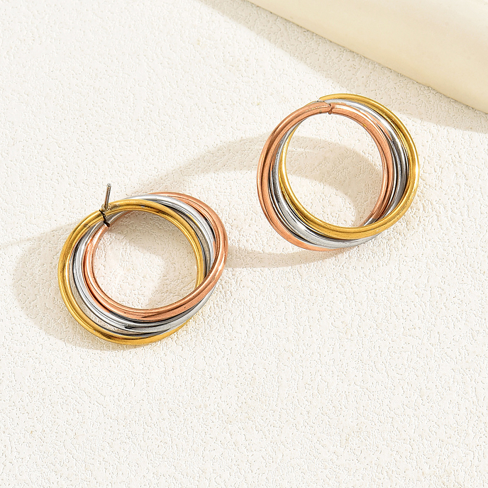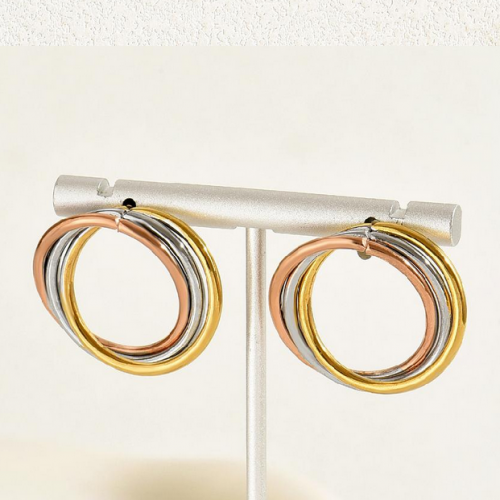 Tri-tone plated, 304 Stainless Steel Hoop Earrings,